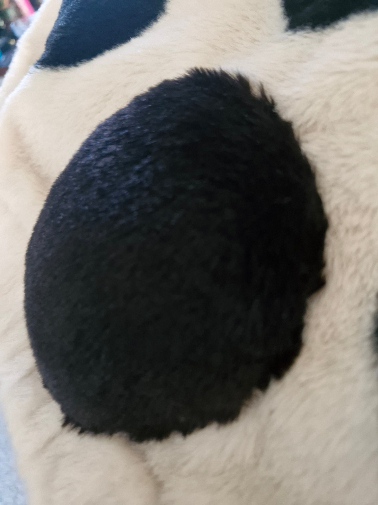 Bibi has a new pair of hand sewn ears in soft black fur and corduroy, with a super soft black bunny tail and added paws, made in the UK.