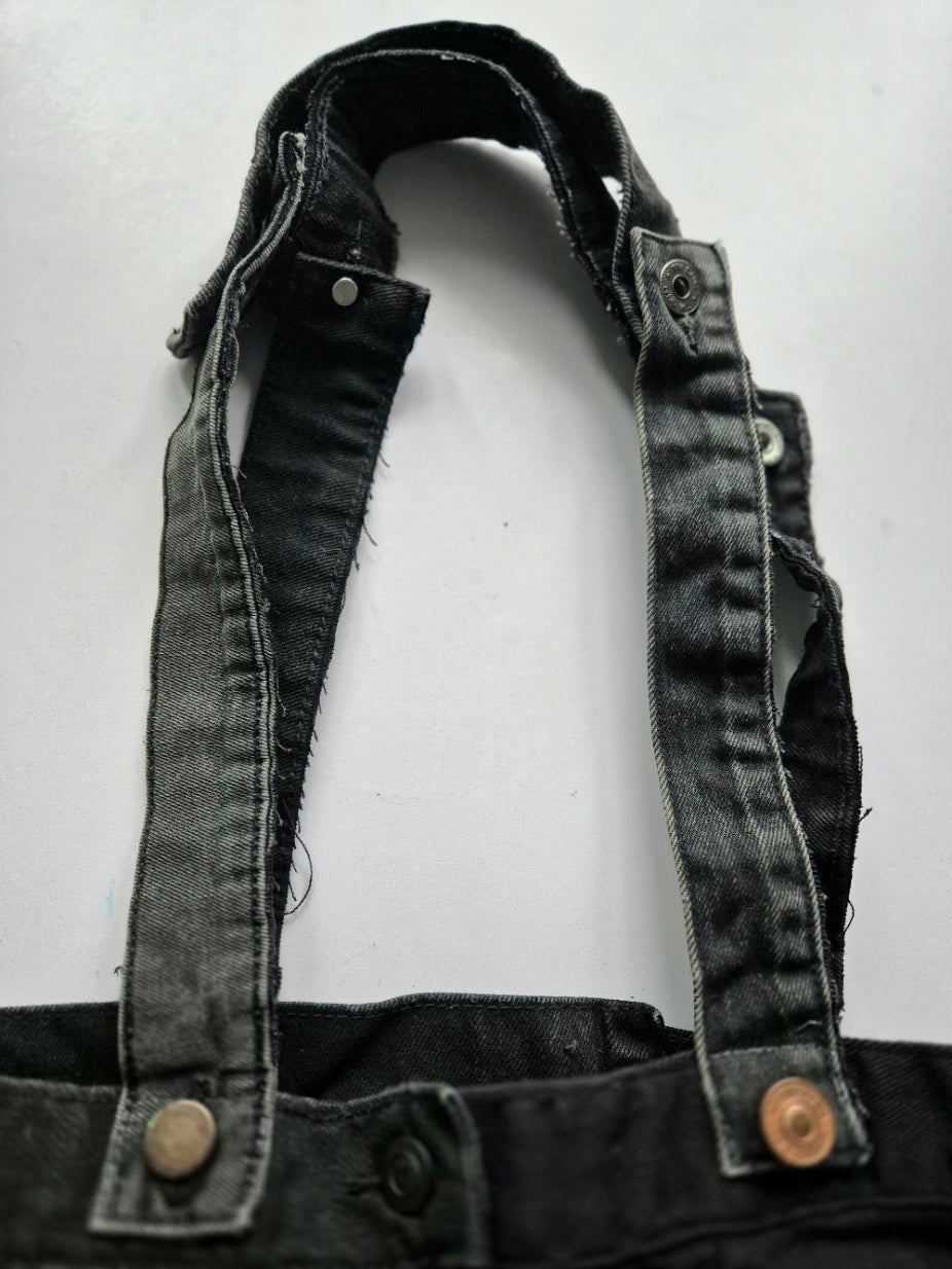 And all in the most sustainable way! Made using denim sleeves which have been cut off many battle jackets, buttoned to each other at the cuffs. The adorable kitty is from another sleeve and stuffed with the softest stuffing, made from recycled plastic bottles. Add a pair of glowing eyes and tinkling bell, with some more cuffs making up the handle, and BOOF - kitty cuteness guarrenteed!