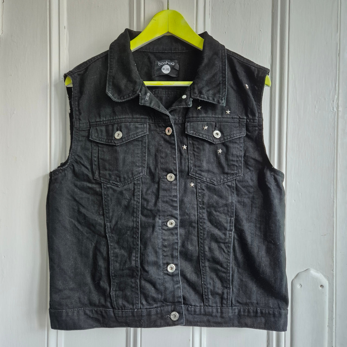The absolute festival essential - and now on black denim! Reworked from a deliciously dark black BOOHOO BLUE denim jacket with a stunning pair of rainbow sequin wings hand sewn onto the back and a flurry of silver stars cascading down the front. Rock star strides.